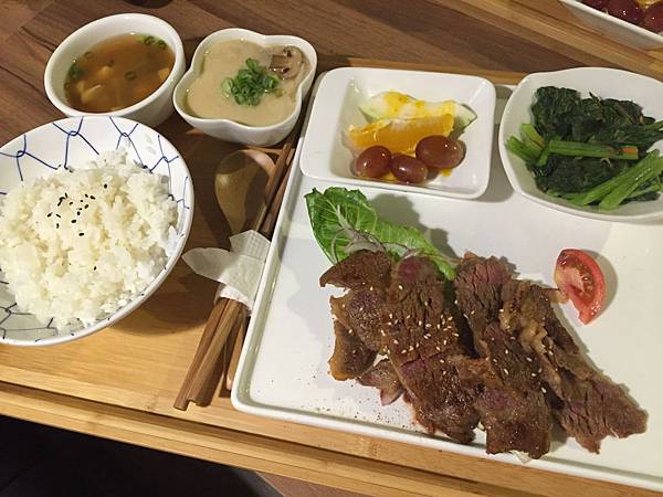 香煎無骨牛小排定食,牛肉的處理相當不錯,配上白飯及搭配小菜也是很有飽足感,只是湯也有些涼...