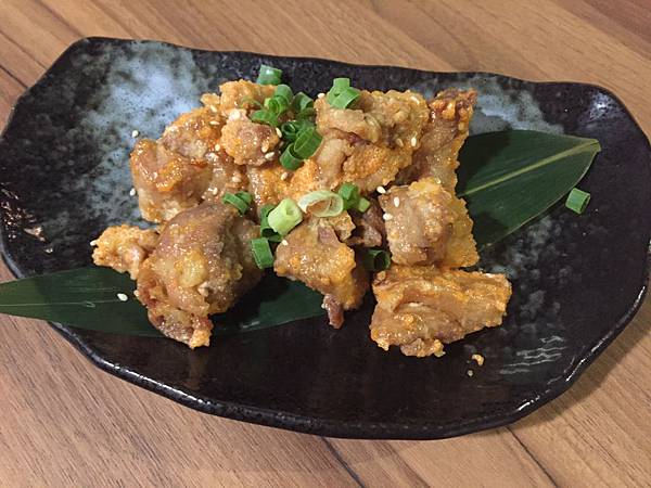 明太子若雞唐揚,炸雞肉的火侯拿捏不錯,雞肉軟嫩多汁好吃。