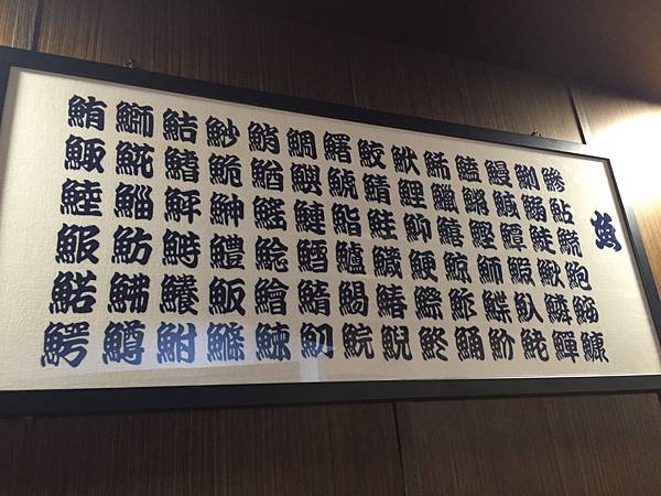 進入後映入眼簾的就是這塊各個魚字旁的字畫,認識的有幾個字呢?嗯哼本人才書學淺且頗無耐心,只好摸摸鼻子趕快入座才是。
