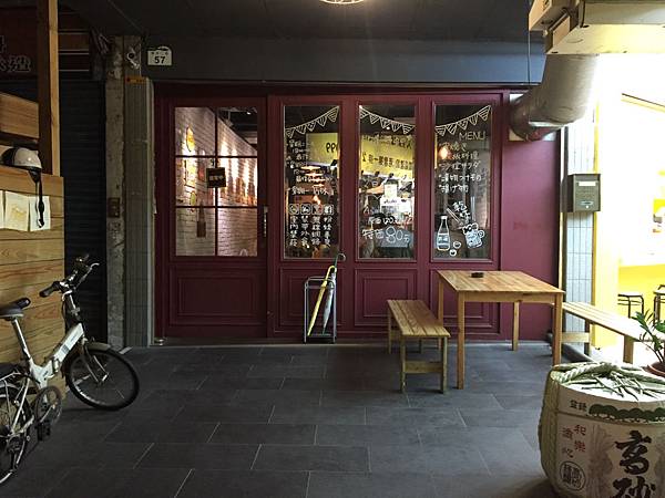 門口簡單佈置為侯位及吸菸等雙軌並行的座位區,大門暗紅色系有類似早期美式酒吧的特色存在。