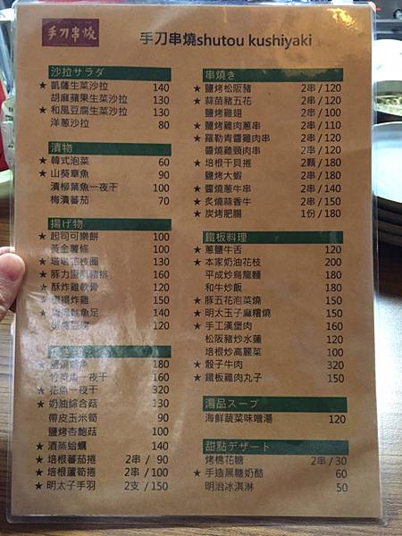 每次在青年路中華路口停紅綠燈時,都會瞥到這家位於青年路上的小串燒店,說實在如果不是停車亂瞄,其實也稍稍不好發現這樣一家店,此次進入消費其實也是因為「手刀」這二字讓我好奇想進入看看有什麼關聯或葫蘆裏賣什麼藥?