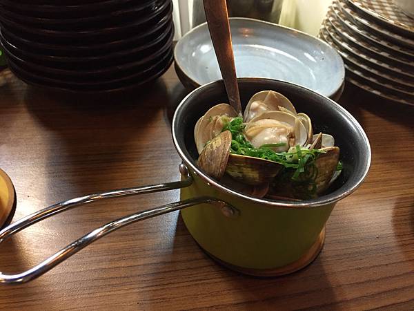 酒蒸蛤蜊 140元 小鐵鍋裝蛤蜊挺可愛的,蛤蜊煮的飽滿不榻陷,口味不錯可接受,但還沒吃過令我激賞的酒蒸蛤蜊。可能都是用米酒的關係,希望可以吃到激賞聖品。
