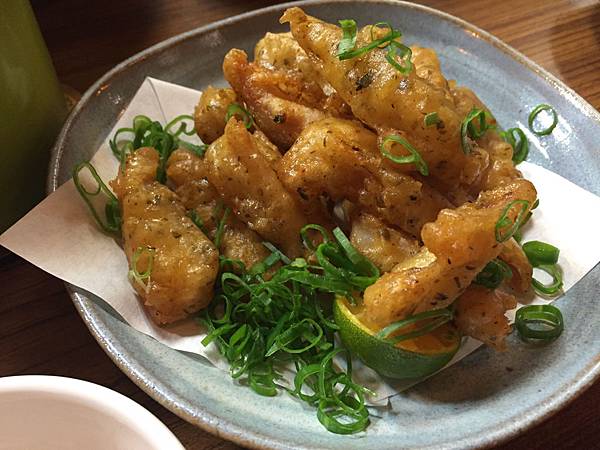 酥炸雞軟骨 120元 粉皮炸至金黃的雞軟骨除原有軟骨的嚼勁外,其粉皮有一股特別的香氣,說是五香也不算是,但就是一股很熟悉的懷念味道,至今我仍想不起來,真是腦殘!不過倒是挺成功的讓我為了確認味道而ㄧ口接一口啊!