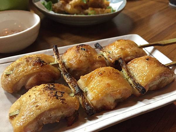 鹽烤雞肉蔥串 120元/2串 雞肉表皮烤的恰恰好,金黃脆口,雞肉肉質蠻嫩的,還好不柴。