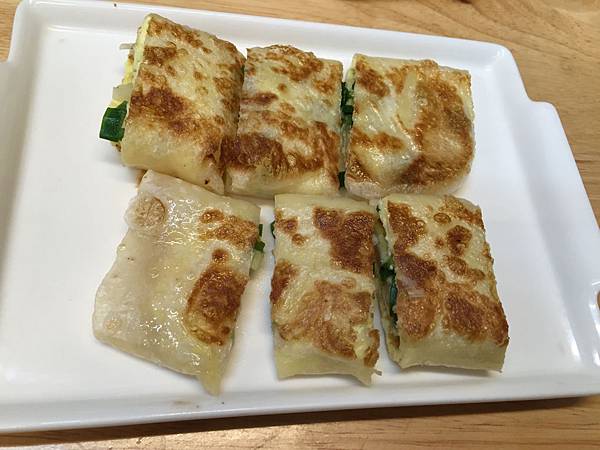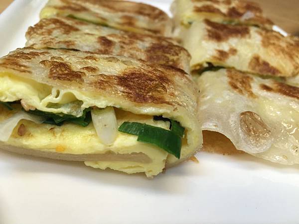 原味蛋餅 25元 煎出來的餅皮外表還算有脆到,不加醬油辣椒醬單嚐餅皮味道就跟平常在外差不多,沒到好吃,但也不是難吃的那種,蔥花的味道就算挺鮮的,自己不愛加醬料那無法怪說不好吃,畢竟還是價格取勝。